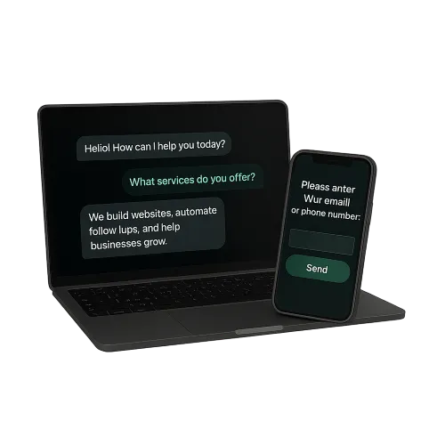 Your AI chat bot engages visitors instantly, answers questions, and captures leads, even when you're offline.